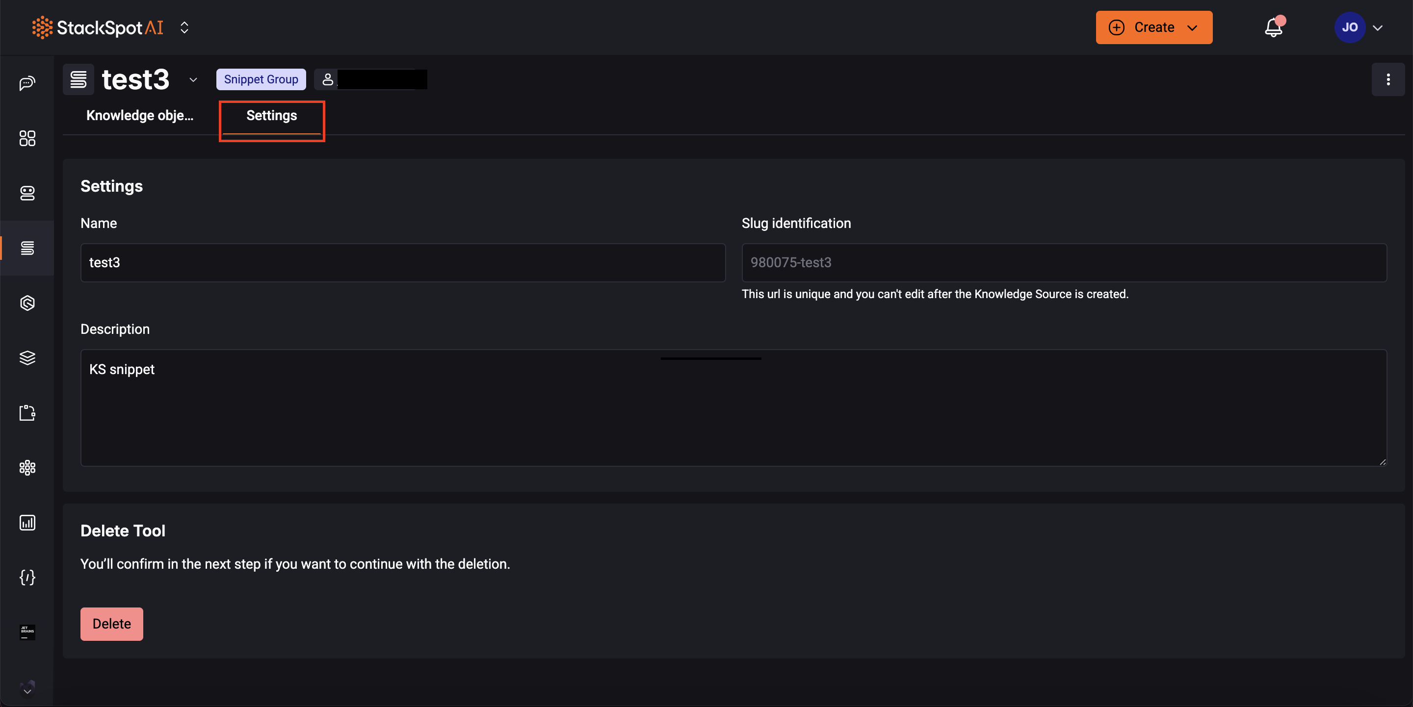 For example, you cannot edit a Knowledge Source object or a snippet. If you want to change something, you must create something new.