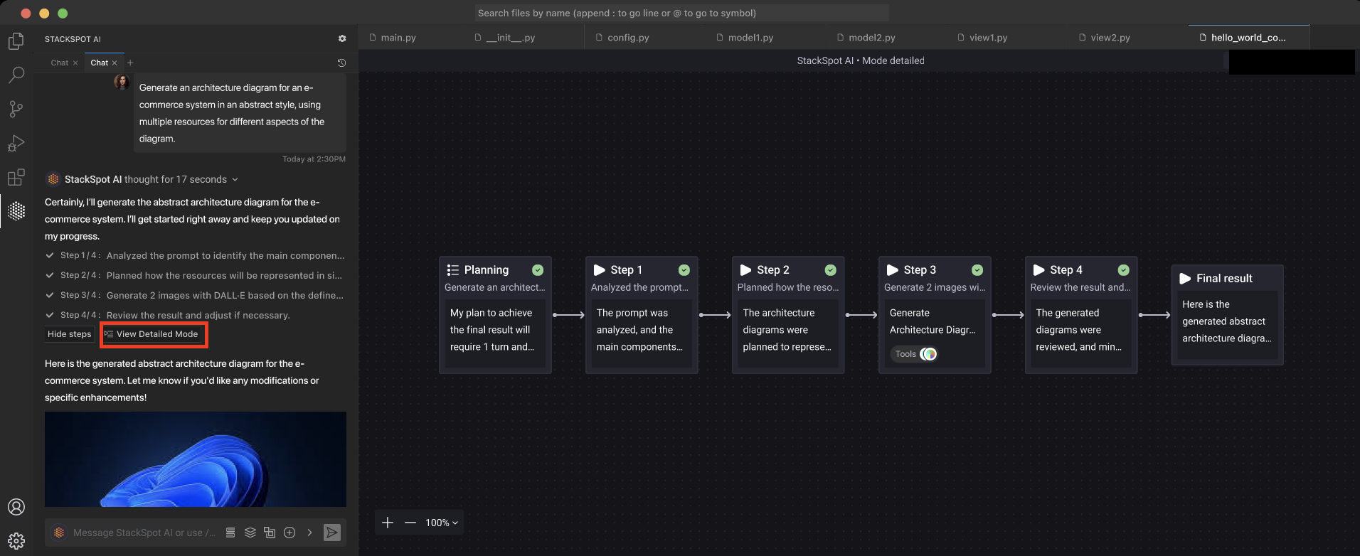 - Clique em 'Visualizar Modo Detalhado' para acessar os passos específicos envolvidos na geração da resposta que você recebeu.