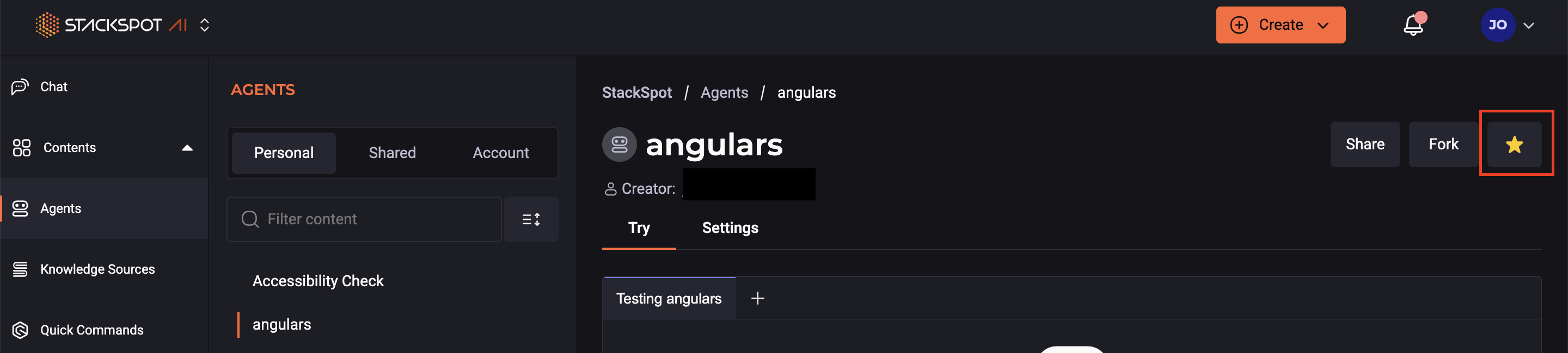 Você também pode marcar seu conteúdo como favorito no Portal StackSpot AI.