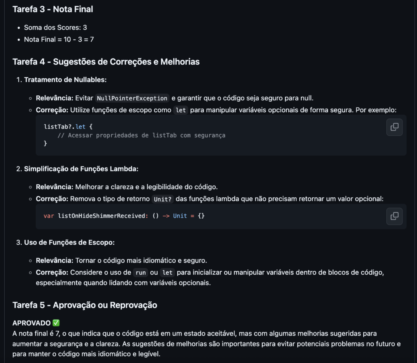 - Ajustes na sintaxe, formatação e sugestões de boas práticas.