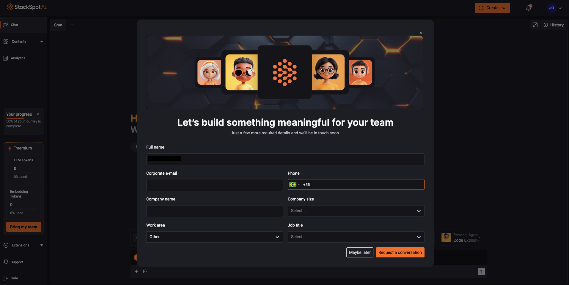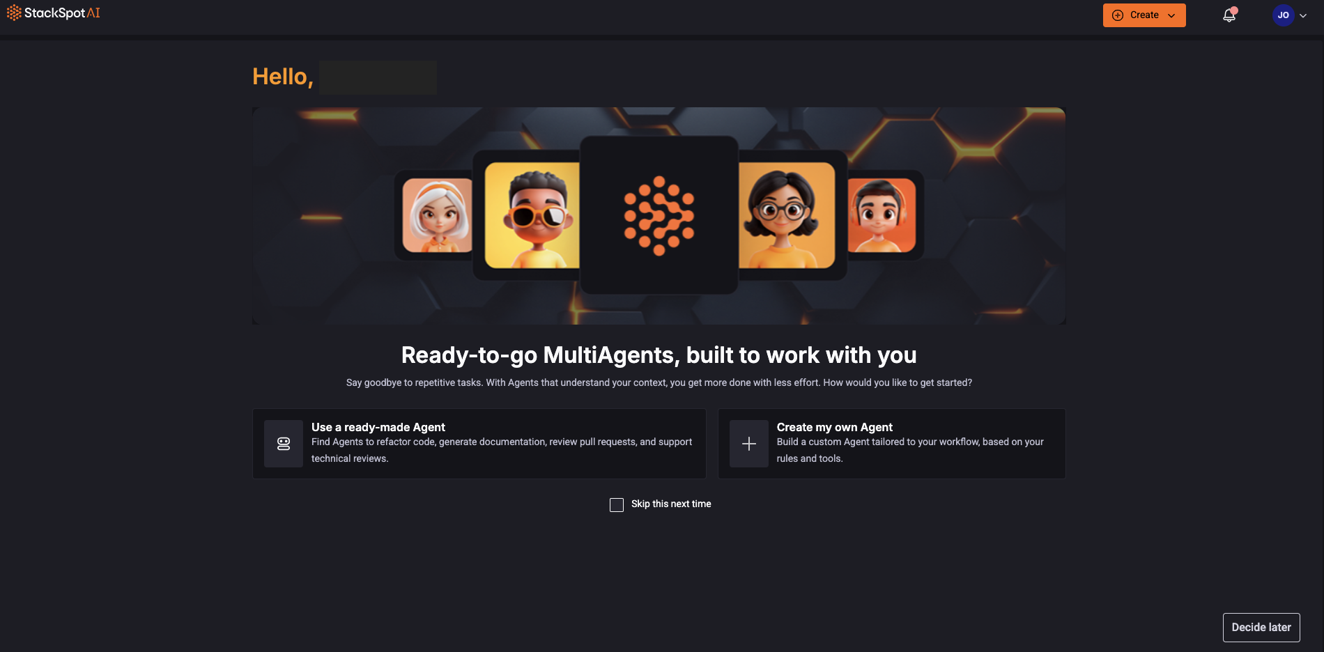 Pronto, você criou uma conta Freemium na StackSpot AI.