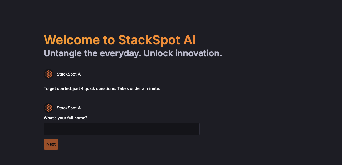 Passo 3. Você será redirecionado para o registro no Portal StackSpot AI. Siga os passos 3 a 6 desta documentação.