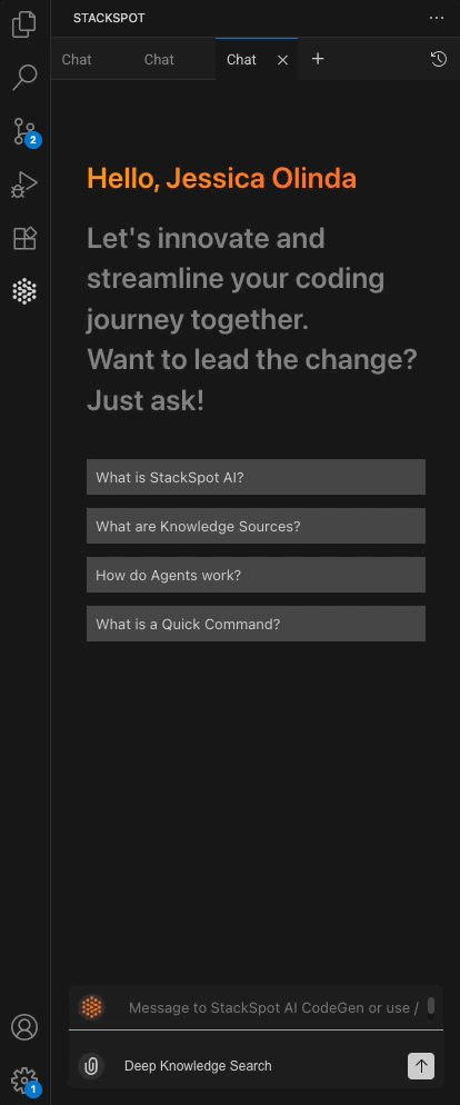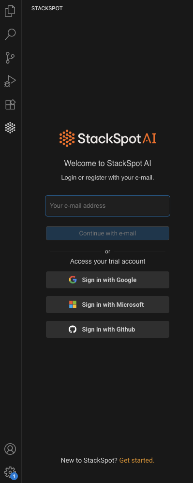 - Instalar extensão StackSpot AI no Visual Studio Code