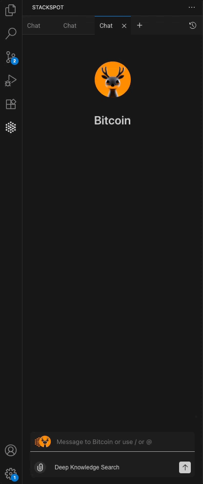 Existe três botões na caixa do chat da sua IDE para selecionar Agentes, Knowledge Sources e Stack AI para facilitar a geração de respostas mais eficientes.