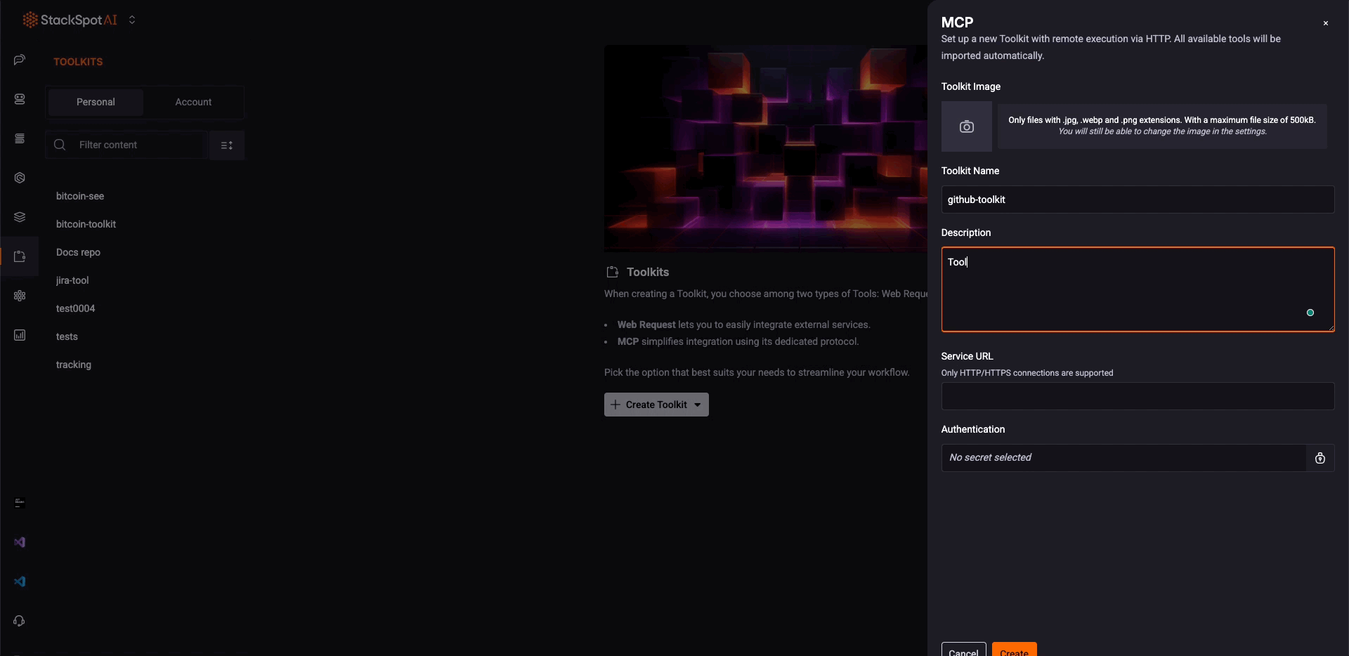 - MCP Toolkit Name: Enter the name of your toolkit.